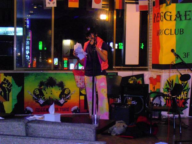 I have no pictures of my motorcycle. But a friend DID post a picture of me rapping. Straight from the mean streets of Seogwipo, I give you INNER CITY HELLO KITTY (again):