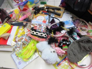 See how happy I look in that photo? By that time of the day, I probably wasn’t in as buoyant spirits as I appear. That’s because I alternated for six hours between chaperoning a “game” where kids tossed crumpled paper at a trash can (one man’s “bored at the office” habit is another man’s “really fun kid’s party game”, I guess), and a “market” where kids used fake money to purchase a load of junk, most of it things you couldn’t give away at a dollar store.