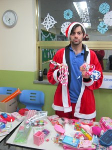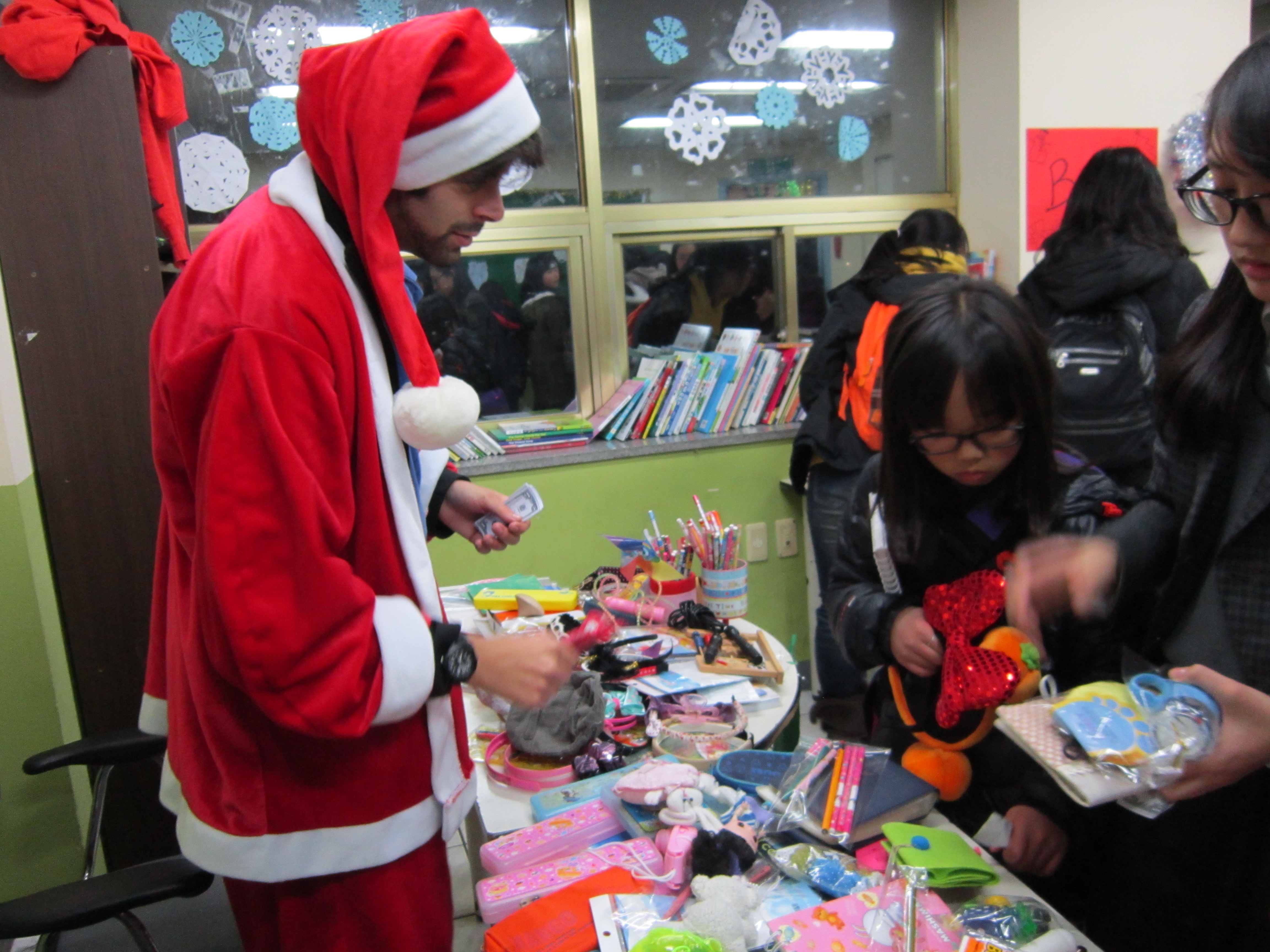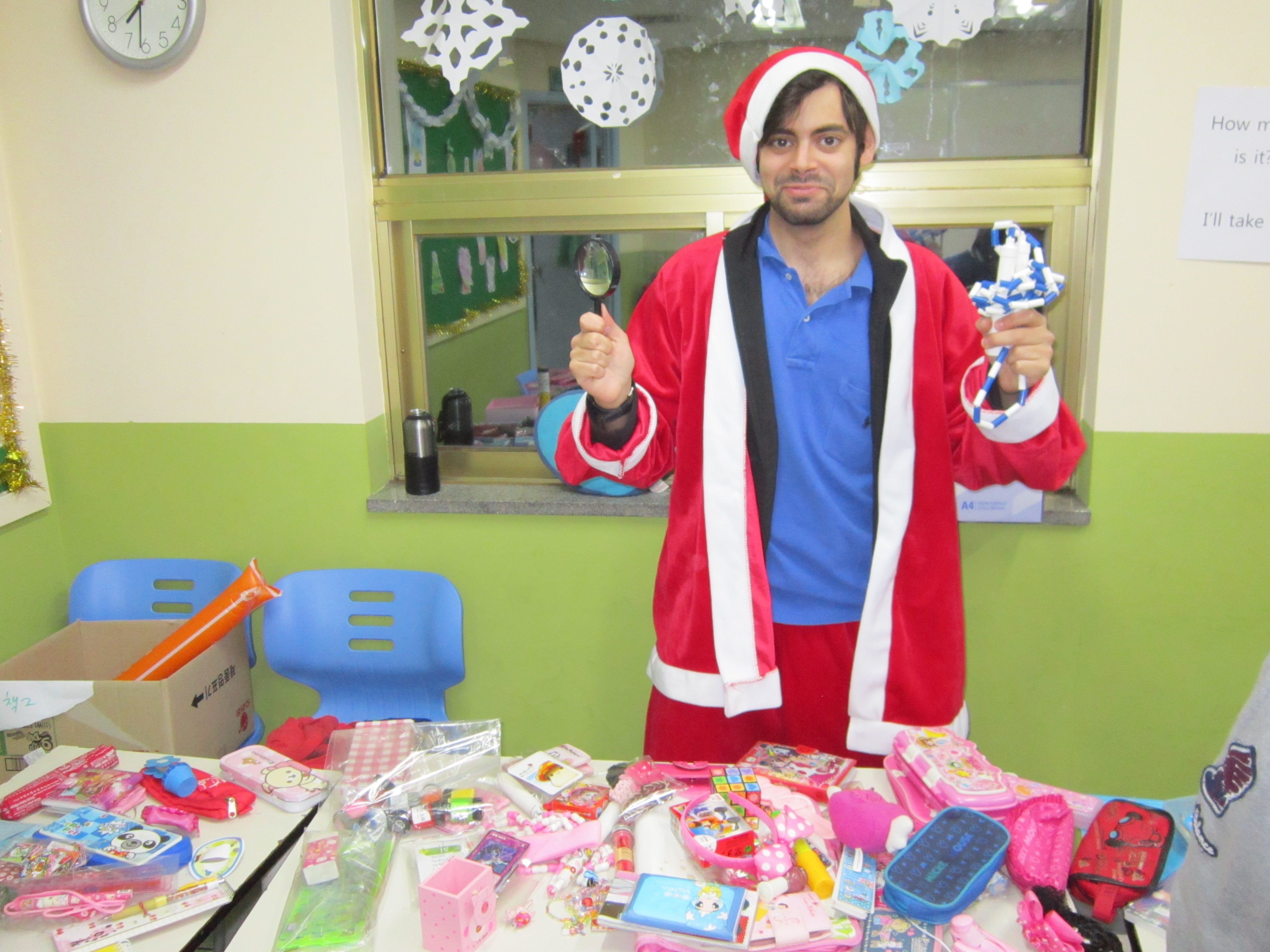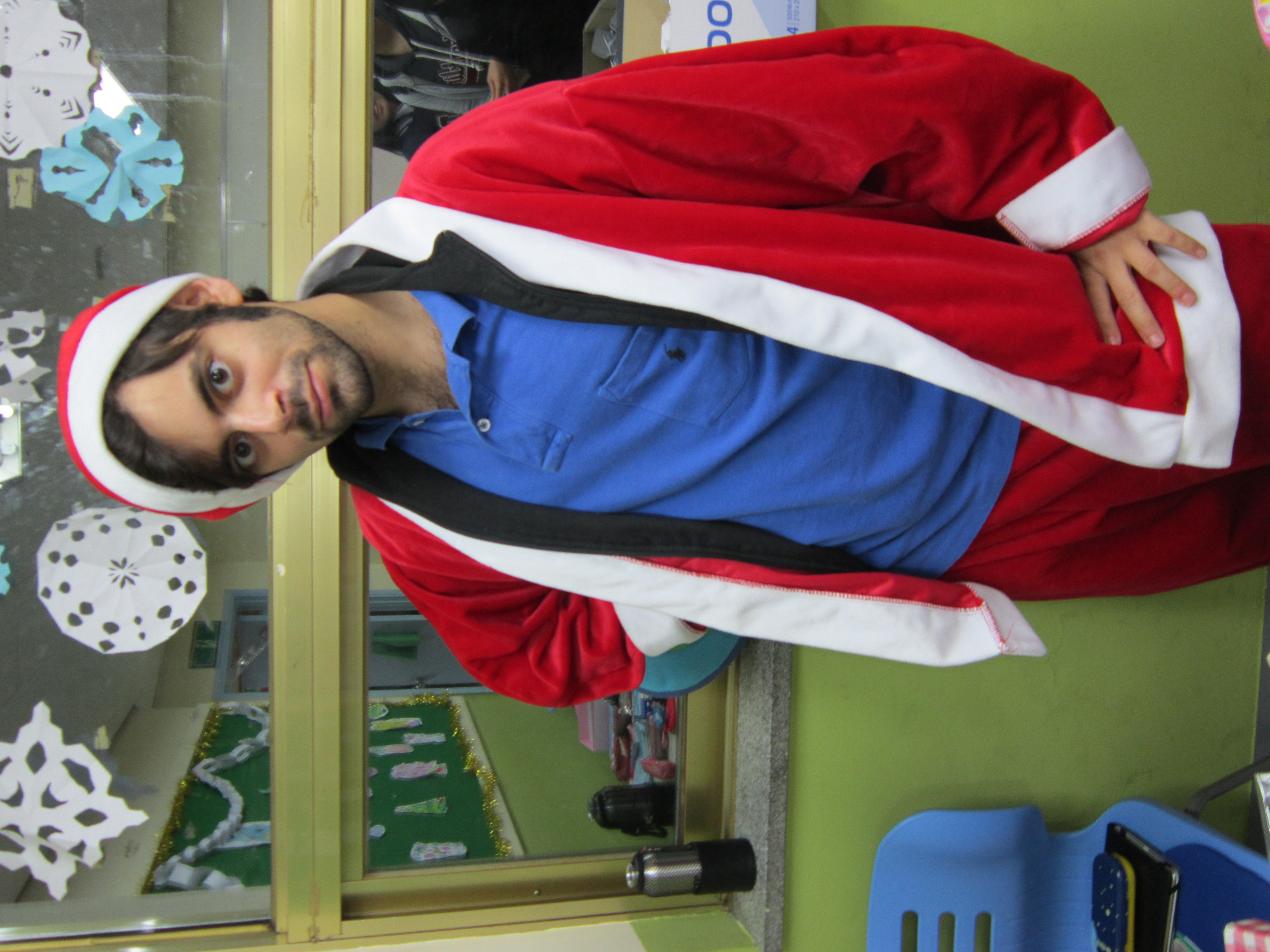 Try a white beard and a fake belly next time! Why does everyone have a coat on? Don’t they heat the school?