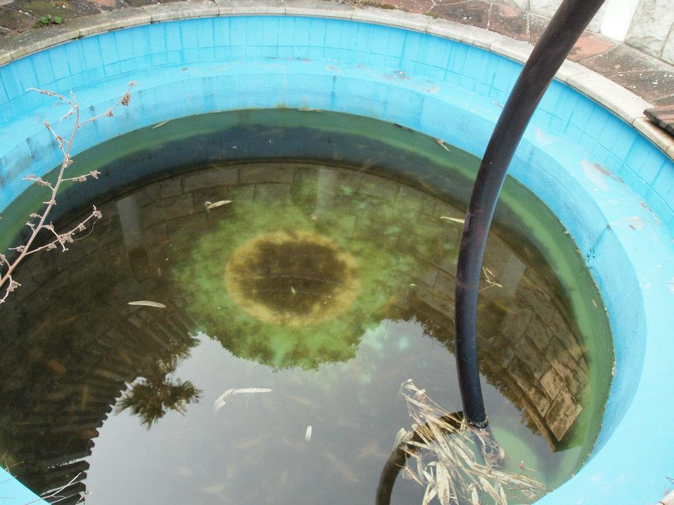 The hot tub still has water in it: