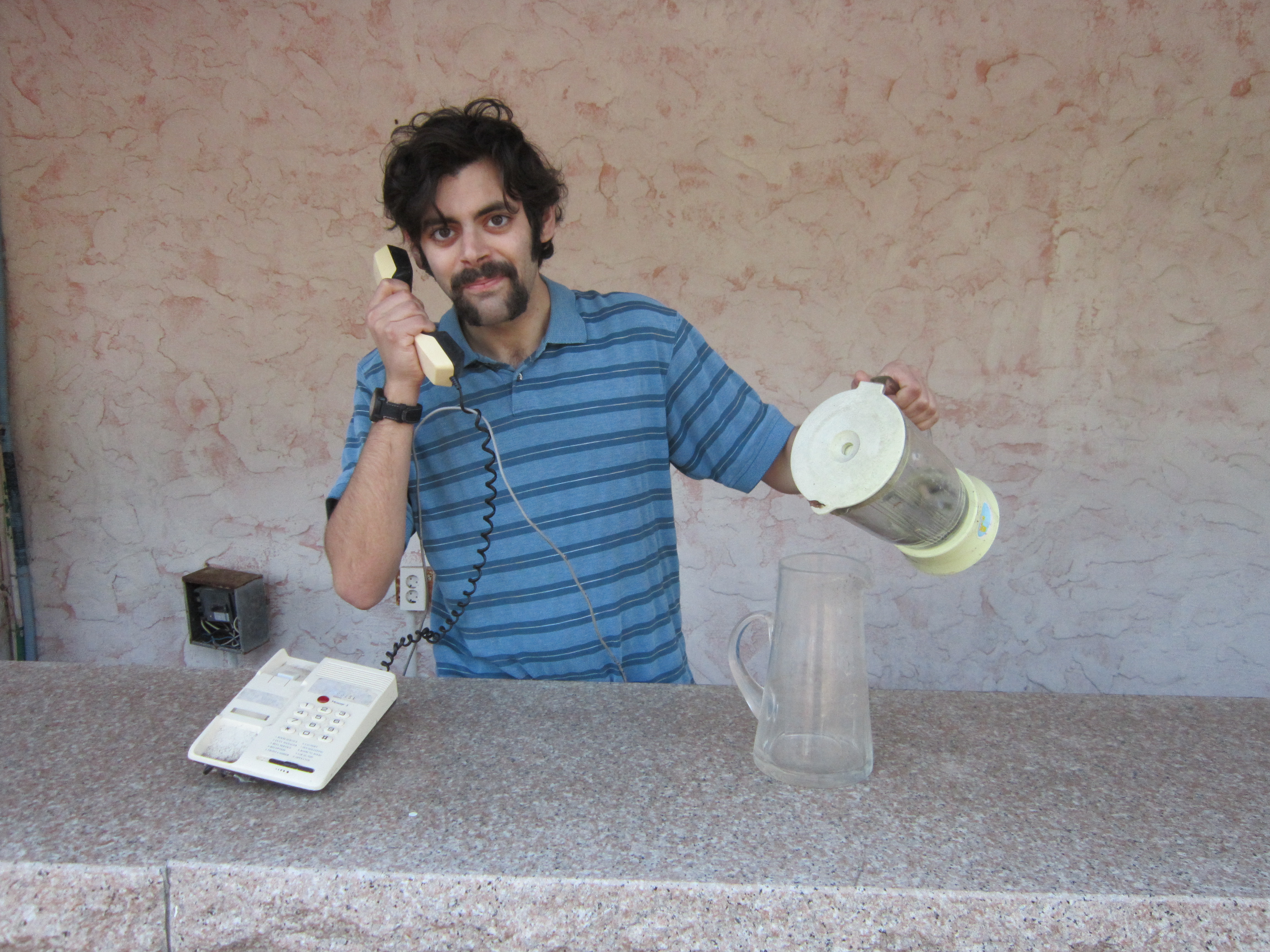 By the way, that spectral figure manning the bar also happens to be the same person who works the phones in the building that houses the “honeymoon suite”: