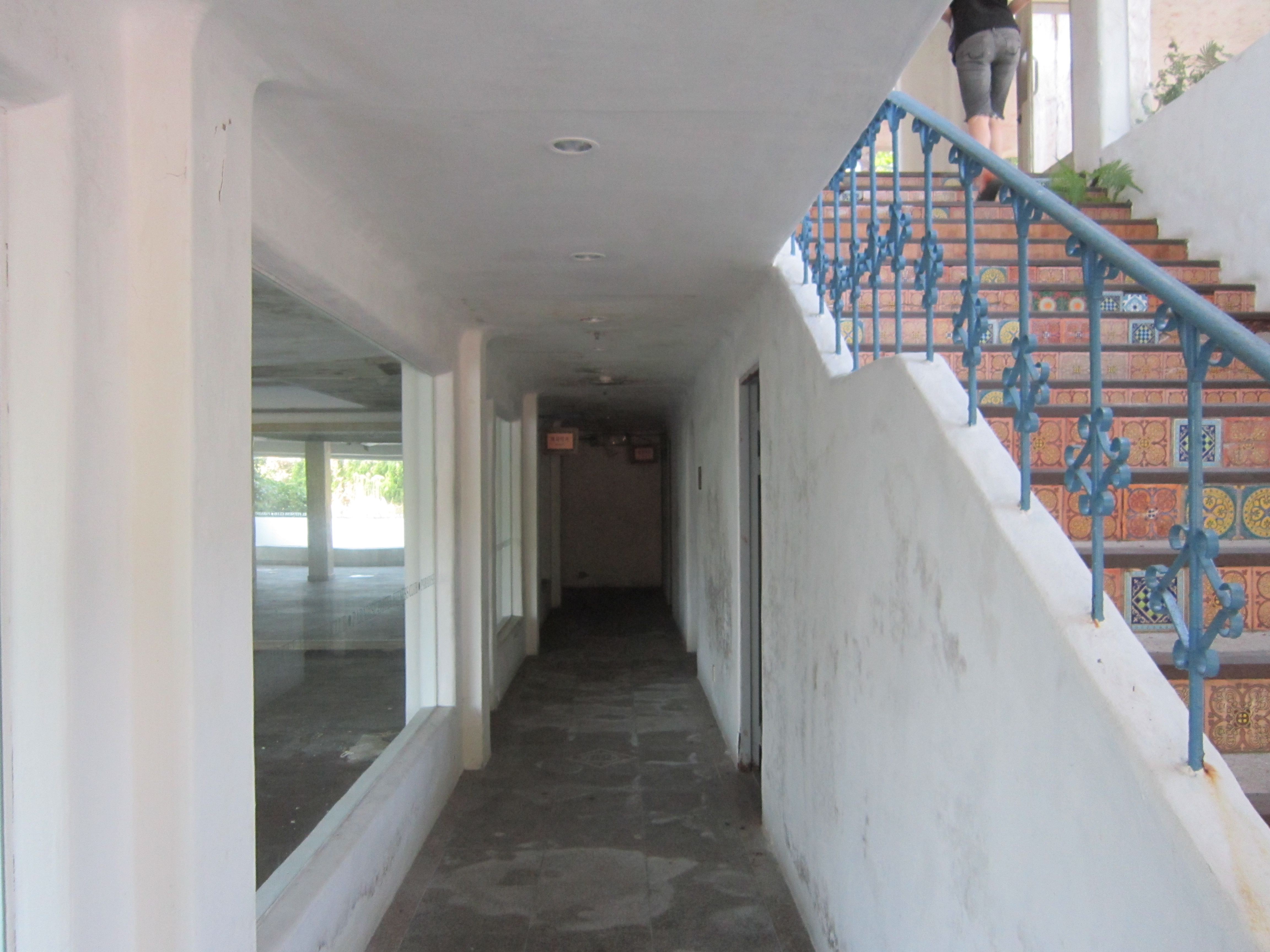 His name is Dakota McKee and in that picture he’s playing around with some empty jewelry boxes he found in the cabinet which he wasn’t supposed. There were also a bunch of stickers in there, which might have been used for people who payed to see the “Syngman Rhee Museum.” The museum, by the way, is the best part of the hotel, because the exhibits are all still completely intact, but the funny part is to get there, you have to be particularly curious, as the only entrance is past the restaurant/honeymoon suite area and then AROUND onto a balcony lined with wooden floorboards that are falling apart, since the doors that lead to the museum the “right” way are all locked. You also can’t see what’s in any of the rooms ahead.