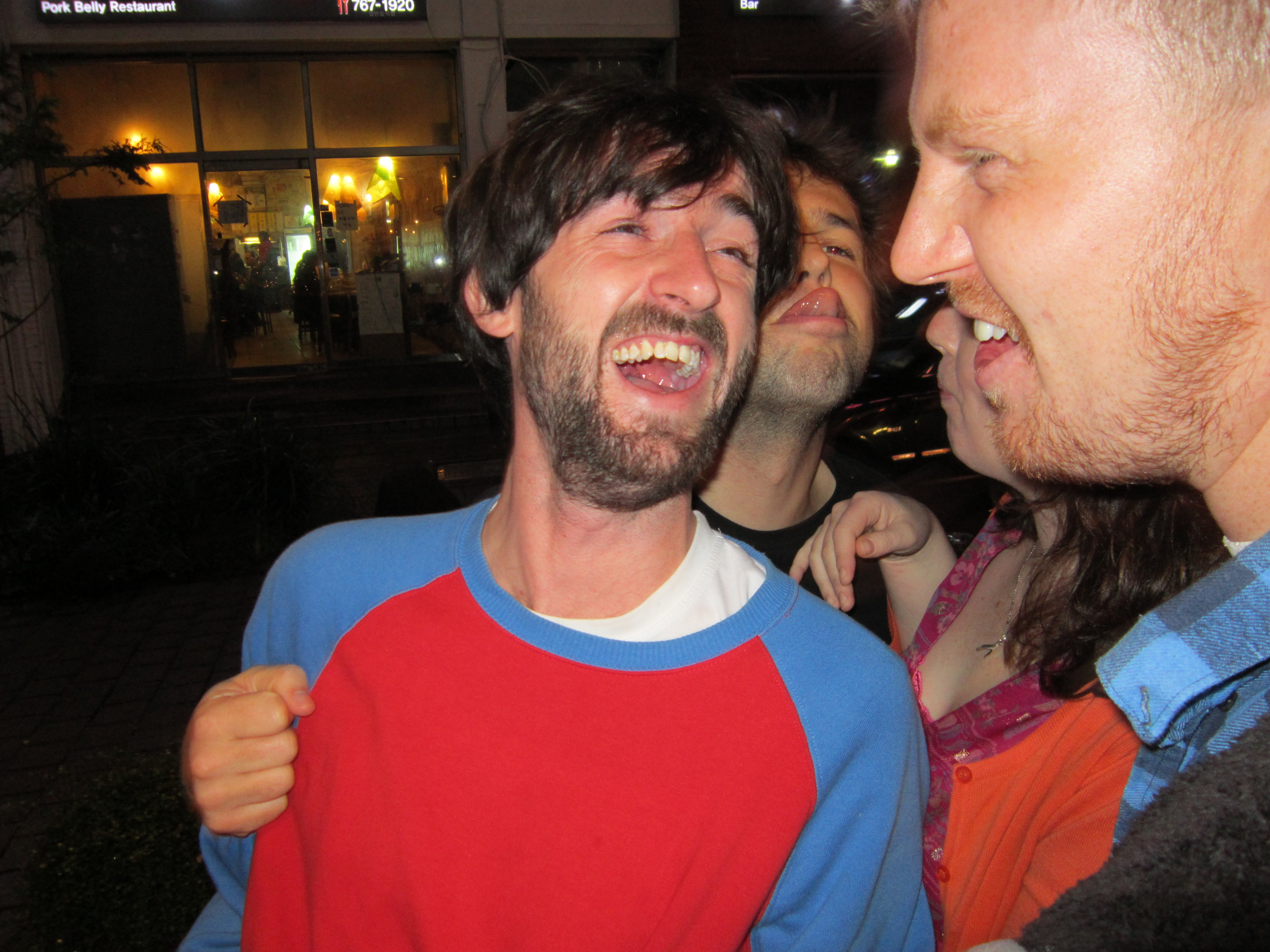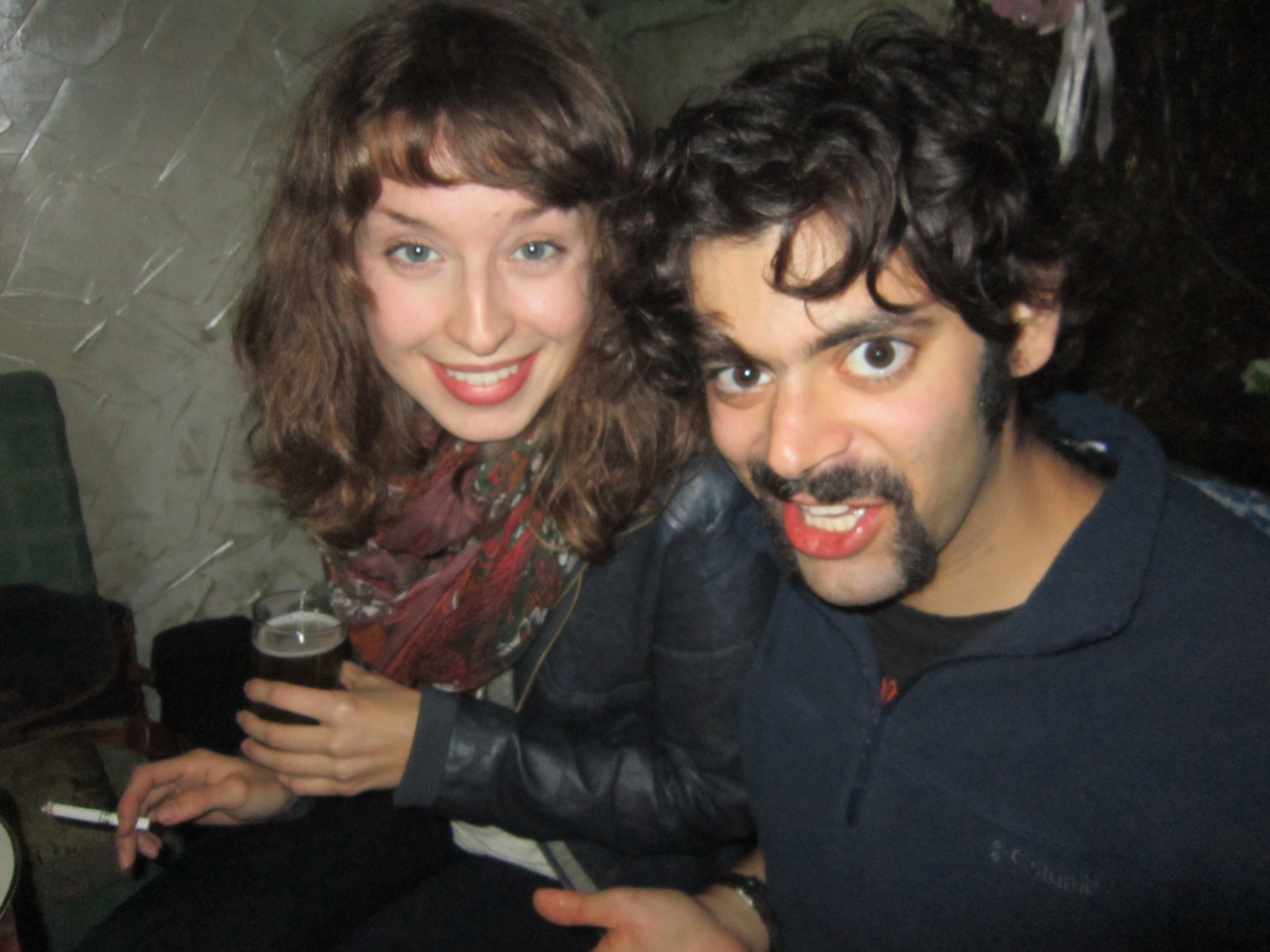 Beer, a cigarette, and two Americans making funny faces: